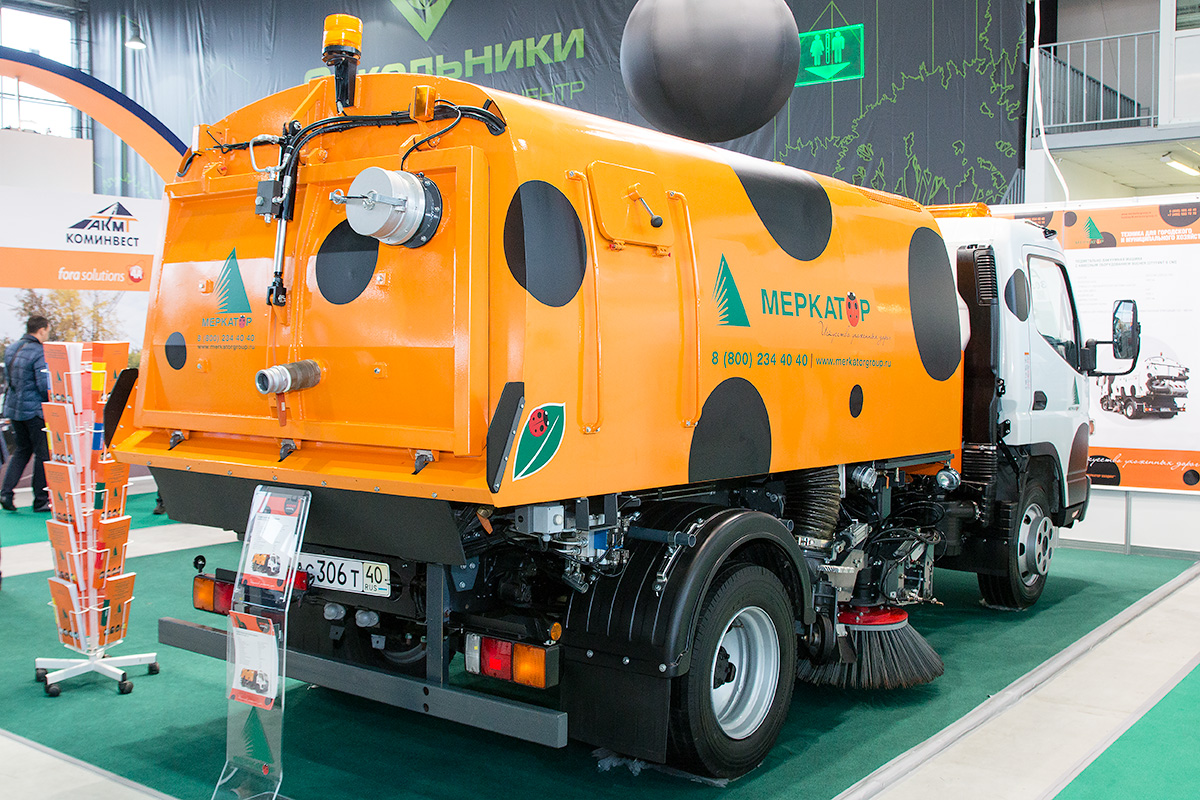 Специальную подметательно-вакуумную машину представило ООО «Меркатор холдинг». Машина предназначена для уборки придомовых территорий (дворов, тротуаров, детских игровых площадок и парковых зон). Компактные размеры и короткая колеса база обеспечивают небольшой радиус для разворота, что делает автомобиль максимально маневренным. Полезный объем бункера из нержавеющей стали составляет 3,5 м. куб. Объем пластикового бака под воды — 750л. (+система рециркуляции воды). Ширина полосы уборки составляет более 2 м.