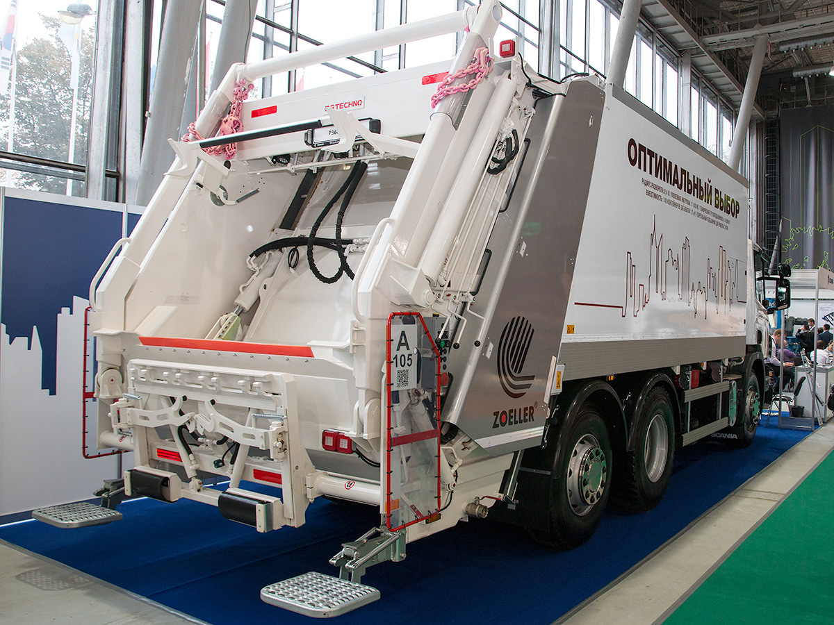 Компания Scania представила мусоровоз на шасси. Автомобиль обладает высокой маневренностью и габаритами, позволяющими подъехать в труднодоступные места, жилые кварталы с плотной застройкой. Управление оборудованием может осуществляться в кабине и на панели управления с правой и левой стороны заднего борта. Машина может работать в двух режимах прессования автоматическом и полуавтоматическом при помощи рычагов. Объем кузова составляет 22 м. куб.
