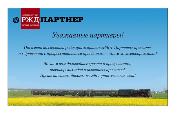 Коллектив редакции журнала «РЖД-Партнер» поздравляет партнеров с профессиональным праздником – Днем железнодорожника!