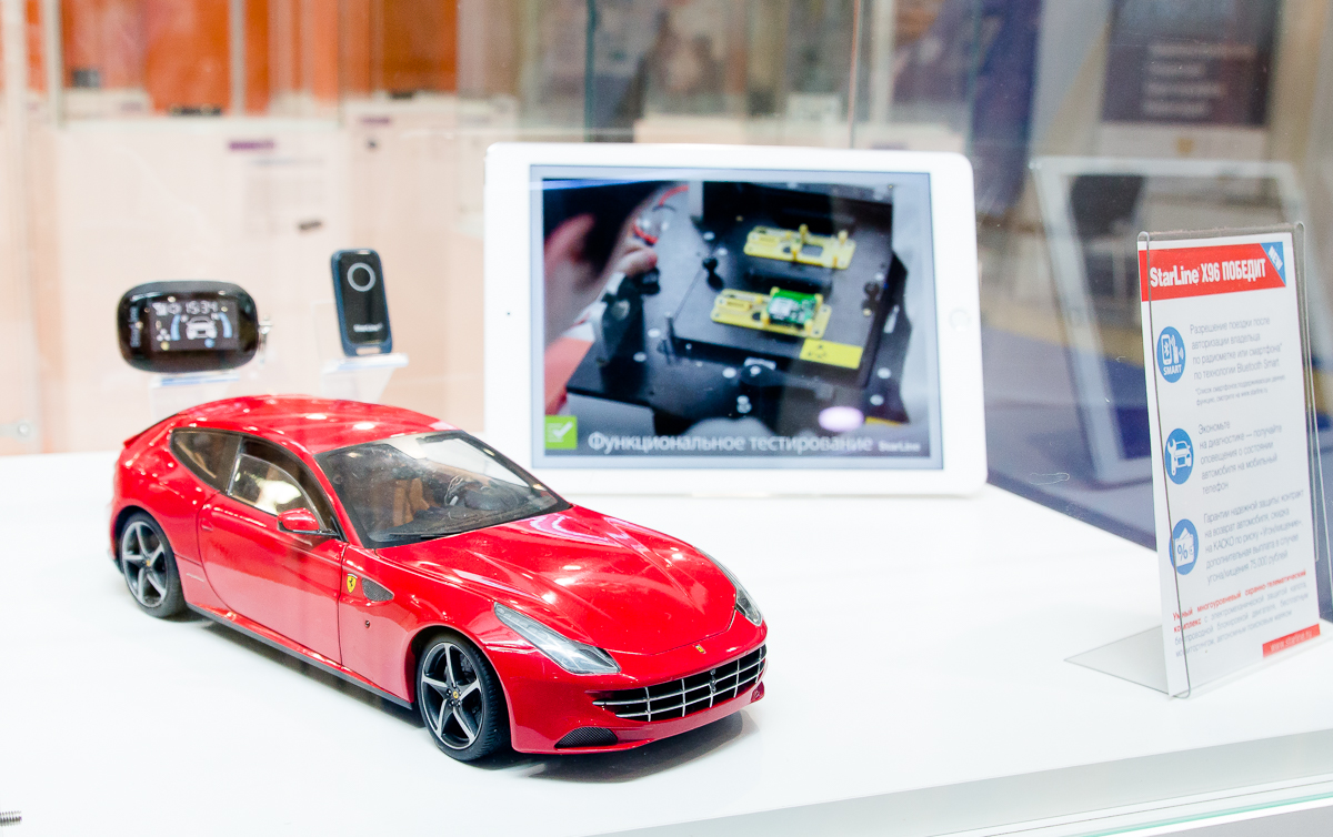 В частности, НПО «СтарЛайн» представило многоуровневый охранно-телематический комплекс StarLine X96. Благодаря этой системе автомобиль станет «умным». Он сможет автоматически проводить самодиагностику в режиме online, а также отправлять предупреждающие SMS с кодом ошибки и описанием неисправности. Что позволит сэкономить время и деньги, затрачиваемые автовладельцем на поездку в сервисный центр.