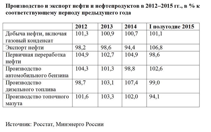 Данные за I полугодие 2015 г. свидетельствуют о наметившемся изменении ряда сложившихся тенденций (см. таблицу). Среди них эксперты выделяют, во-первых, произошедшее впервые за последние годы снижение производства мазута, во-вторых, также впервые за последние годы, увеличение экспорта сырой нефти (для государственного бюджета данный экспорт более эффективен по сравнению с экспортом мазута), в-третьих, снижение объема переработки нефти. Данные результаты следует рассматривать как первые эффекты налогового маневра.