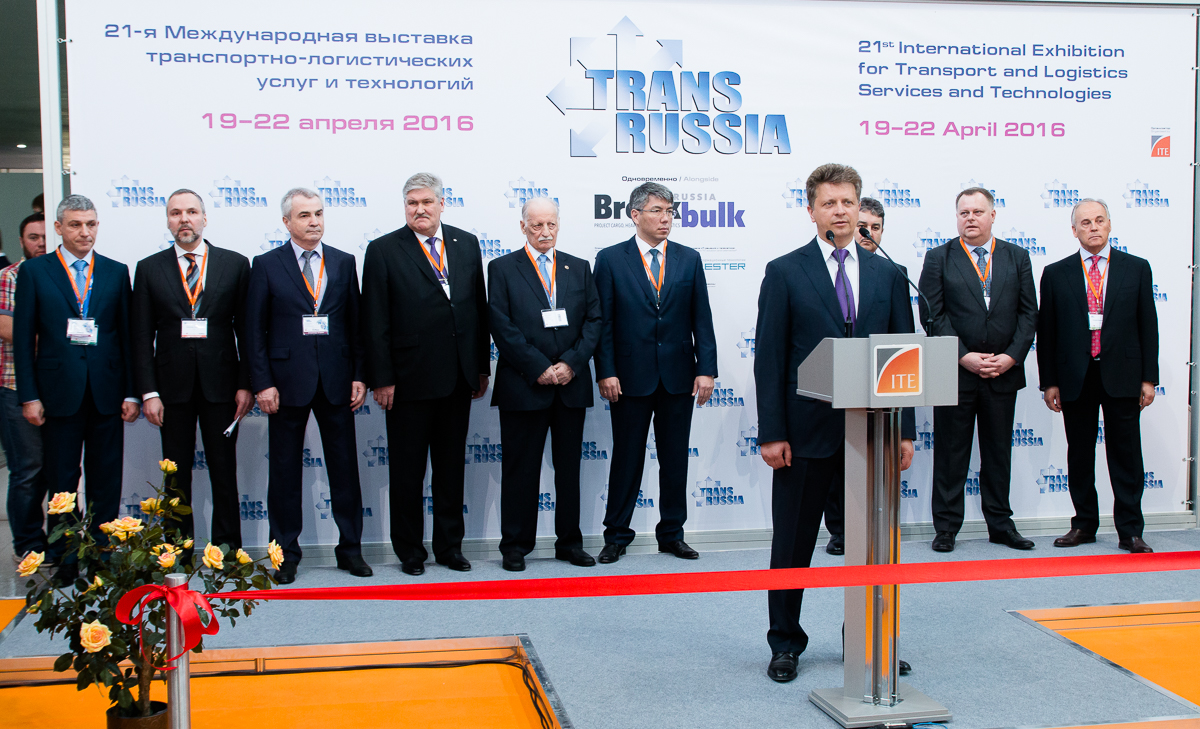 В церемонии открытия выставки принял участие министр транспорта РФ Максим Соколов. По его словам «ТрансРоссия», не просто выставка, а международный логистический форум, поскольку почти половина логистических компаний, участвующих в мероприятии являются международными. «Развитие логистических цепочек, оказание услуг высокого качества как пассажирам, так и грузоотправителям является одними из ключевых целей транспортной стратегии до 2030 года, утвержденной правительством РФ. Именно логистика связывает все отрасли и виды транспорта в единую транспортную систему. Она делает наши границы более прозрачными, снимает противоречия между различными государствами и транспортными системами, формируя бесшовные скоростные связи. Логистика является наиболее инновационной сферой применения транспортных услуг. Поэтому именно логистическая отрасль играет все большую роль в экономике всех государств», - пояснил министр. Также он отметил, что благодаря экспорту транспортных услуг в бюджет РФ в прошлом году поступило более 14 млрд долл. США. А это выше дохода, полученного нашей страной от экспорта угля или минеральных удобрений и составляет почти треть от доходов, полученных от экспорта газа.