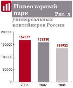 Перевозка грузов в контейнерах долгое время оставалась чуть ли не единственным растущим сегментом. Так, только в Большом порту Санкт-Петербург за январь – ноябрь 2008 года на фоне массового сокращения объемов перевалки (металлолом – минус 37%, лес – минус 52%) контейнерные грузы продемонстрировали рост на 13%. По итогам 9 месяцев данный показатель равнялся 21%.
