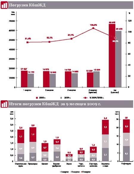 Среднесуточная погрузка контейнеров в первом квартале 2009 года составила 3590 единиц, 2185 крупнотоннажных, и сократилась к аналогичному периоду 2008-го на 22%, крупнотоннажных – на 16,1%. При перевозке контейнеров, так же как и вагонов, прослеживается тенденция роста объемов от месяца к месяцу. Так, в феврале по отношению к январю текущего года рост погрузки достиг 44,9% (КРК – 29,4%), а в марте к февралю – 9,4% (КРК – 10,1%).