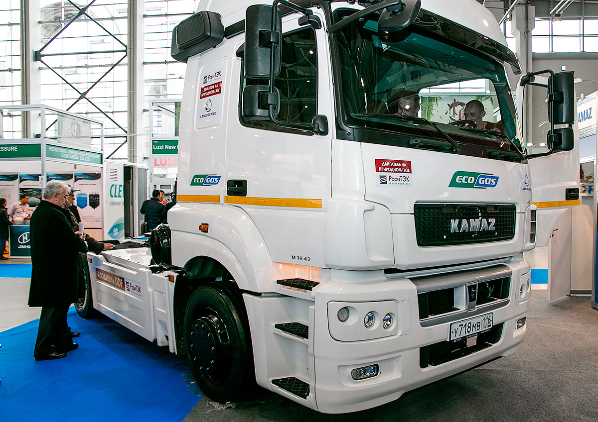 В рамках выставки крупнейшие предприятия России представили свое видение газомоторной техники. ПАО «КАМАЗ» представило седельный тягач KAMAZ-5490 с газодизельной системой. Максимальная скорость транспортного средства не менее 90 км/ч. Тягач оснащен дополнительным газодизельным оборудованием с электронной подачей компримированного природного газа (метана). В результате двигатель может работать как в штатном дизельном режиме, так и в газодизельном. При работе в смешанном режиме потребляется до 55% дизельного топлива для воспламенения газовоздушной смеси, замещающей оставшиеся 45%.